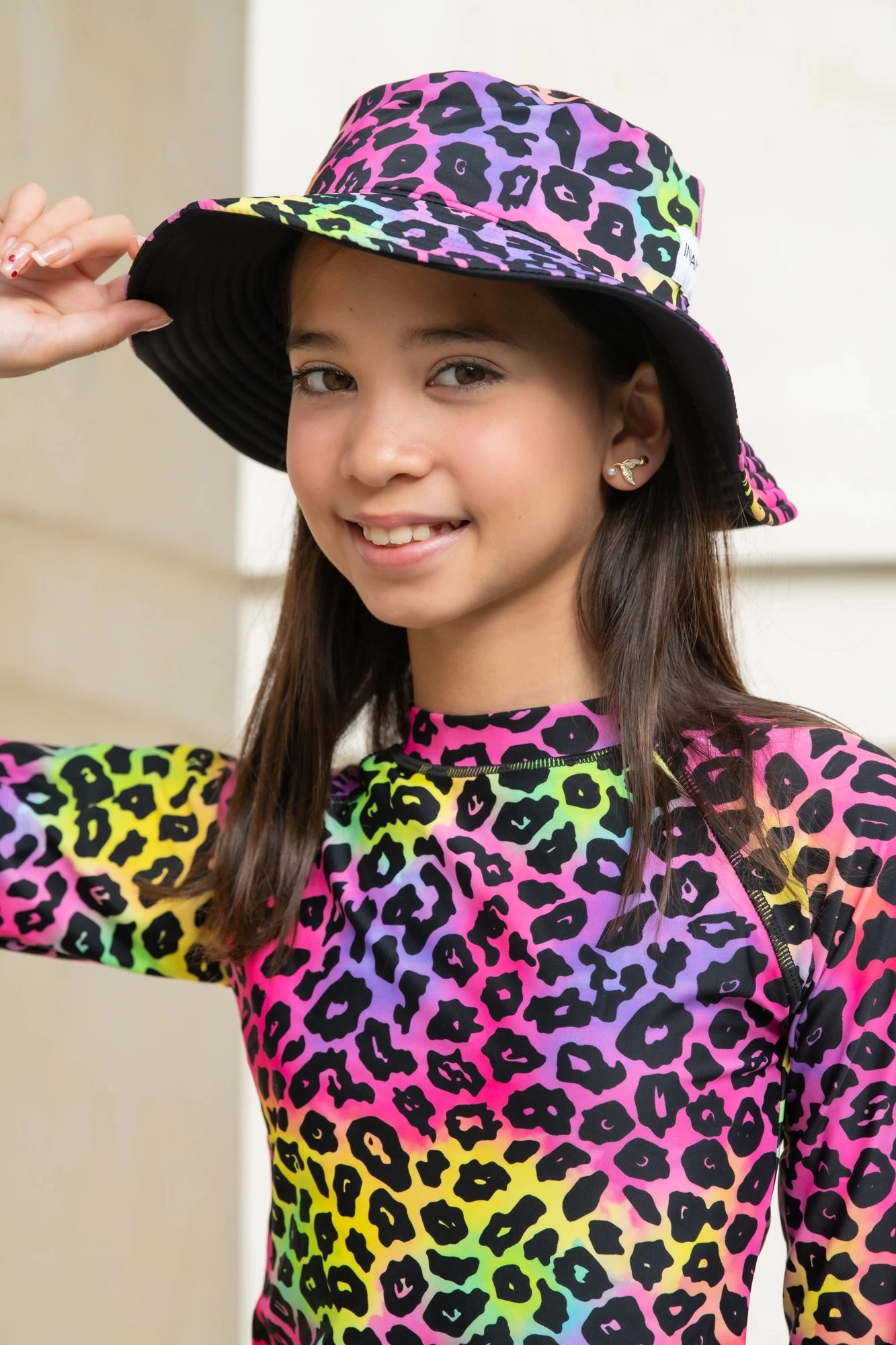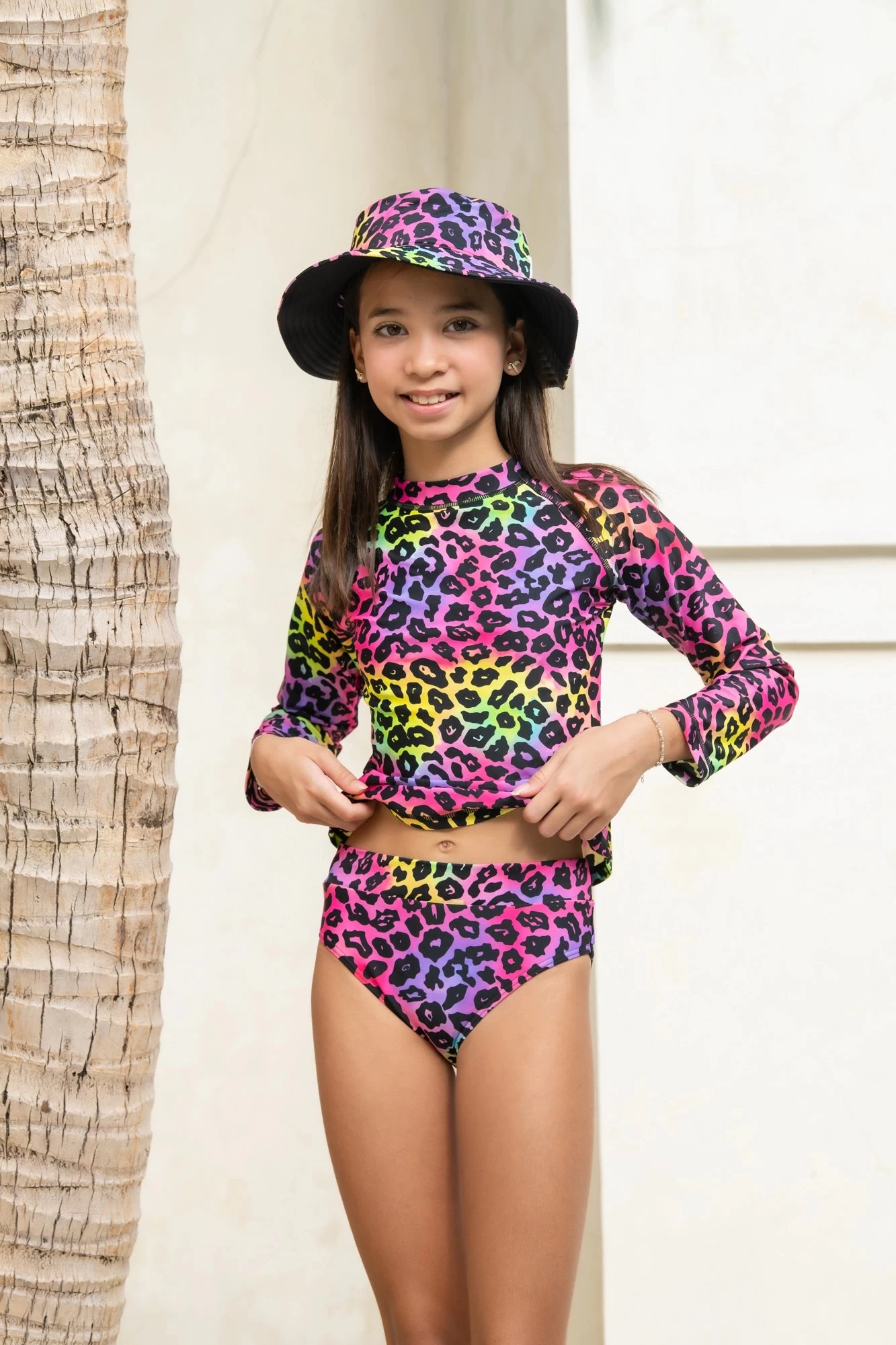 Embrace the untamed charm of “Wildcat” swimwear, featuring vibrant hues of pink, purple, green, and yellow in a dazzling leopard print with classic black spots, exuding irresistible appeal and vitality on sunny beaches! 🐾👙