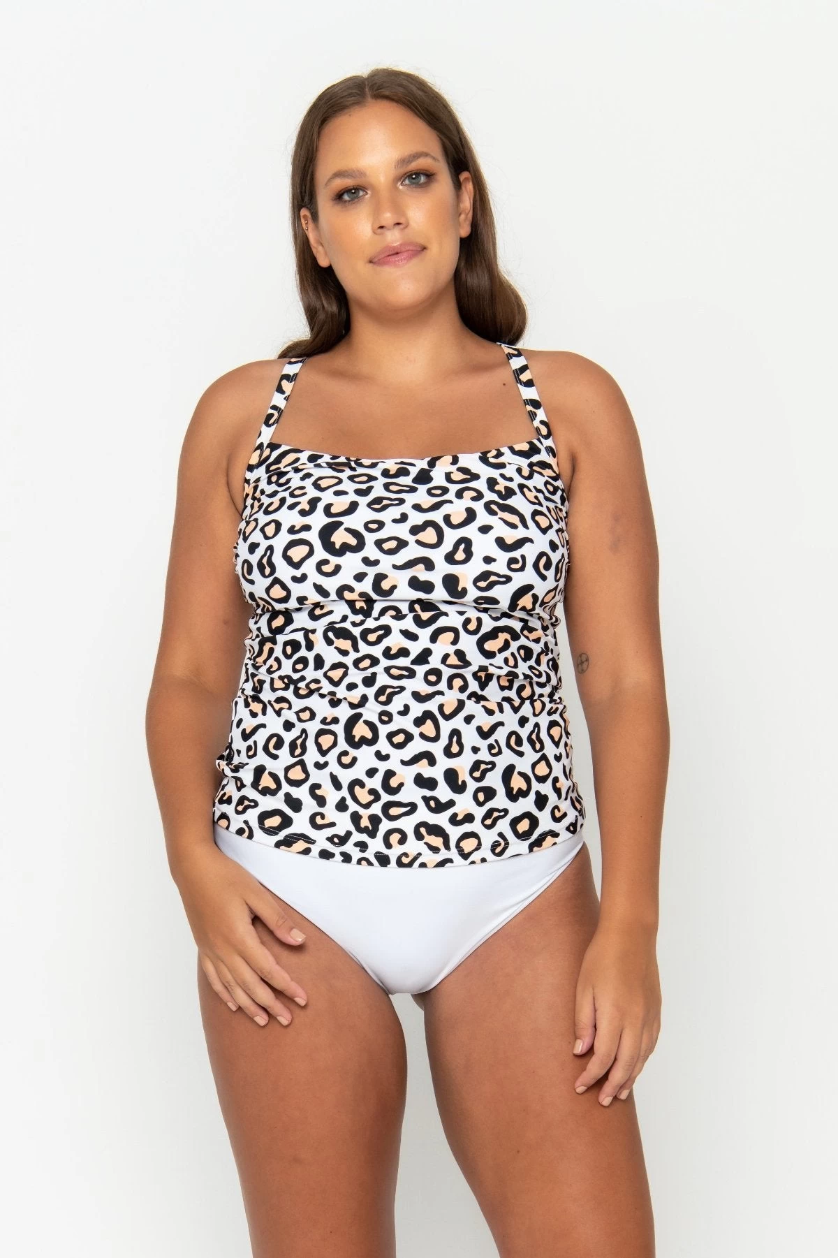 We are a little bit (ok, A LOT) wild about leopard print! If you’ve been on the hunt for a tankini that ticks all the boxes, you are in luck, meet the New Giselle Tankini Top in Safari Leopard print. With a flattering slightly scooped neck line, under bust support and built in cups to give you the ultimate bust shape all in a classic tankini length. This beauty is all about giving you that figure hugging, body loving, confidence boosting and all day comfort that you deserve from your swimwear.