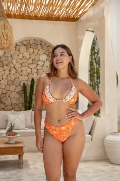 Immerse yourself in pure poolside glam with “Tangerine” swimwear, where fuscia coral purples and tangerine oranges waltz on a lilac backdrop, creating a fancy and gorgeous beach-ready masterpiece!