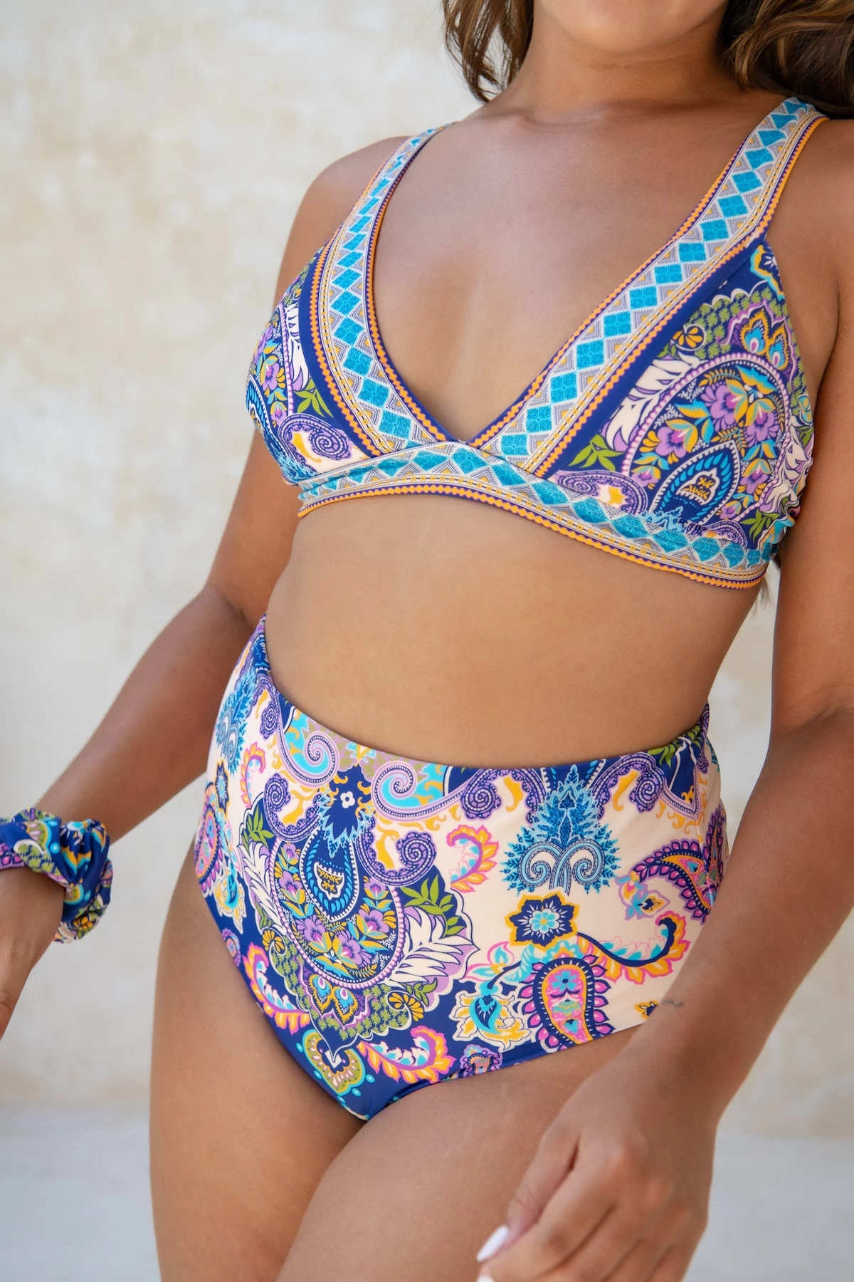 Our Peacock Swirls swimwear fabric paints a vibrant tapestry reminiscent of the majestic peacock, with intricate paisley motifs dancing in a kaleidoscope of hues. A celebration of bohemian allure, this print invites wearers to bask in its rich, mesmerizing patterns, echoing the beauty of nature’s most regal bird.