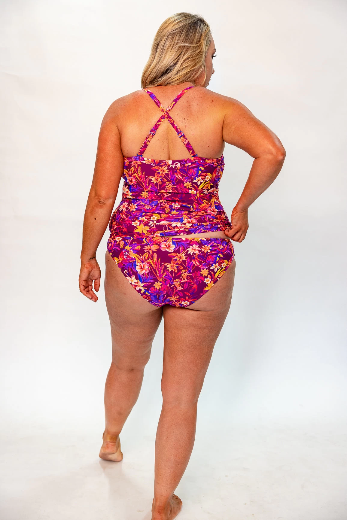 Introducing Daydream, the hottest floral swimwear print of the season! A darker edit of our Heatwave print, this vibrant design features a bold pattern of tropical florals and leaves in shades of purple, pink, coral, and gold set on a dark purple background. Whether you’re chilling on the beach, frolicking in the waves, or enjoying some poolside cocktail magic, this fabulous print is your go-to for a sizzling summer adventure. Spice up your swimwear collection today and get ready to bring on the heat in style!