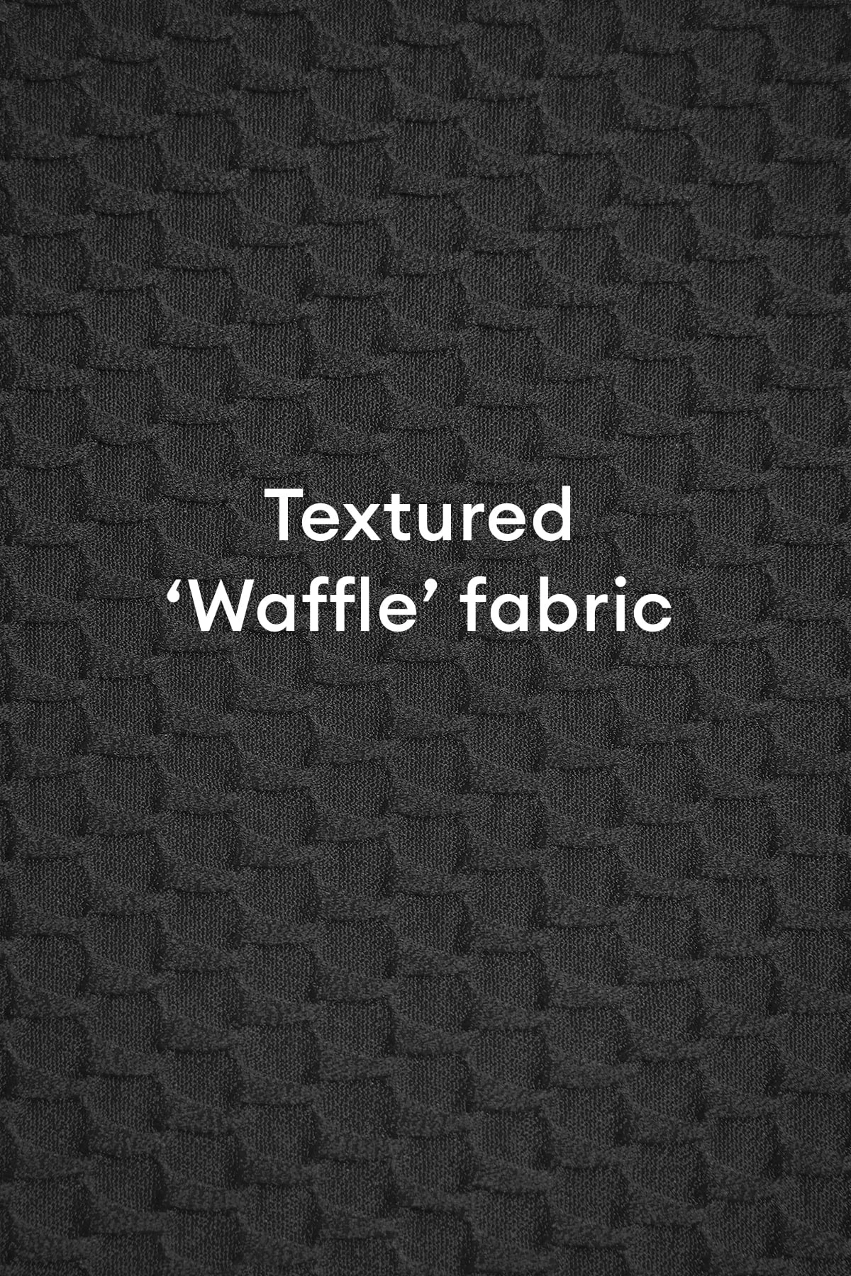 - Luxe waffle-textured polyester fabric outer, luxe inner lining