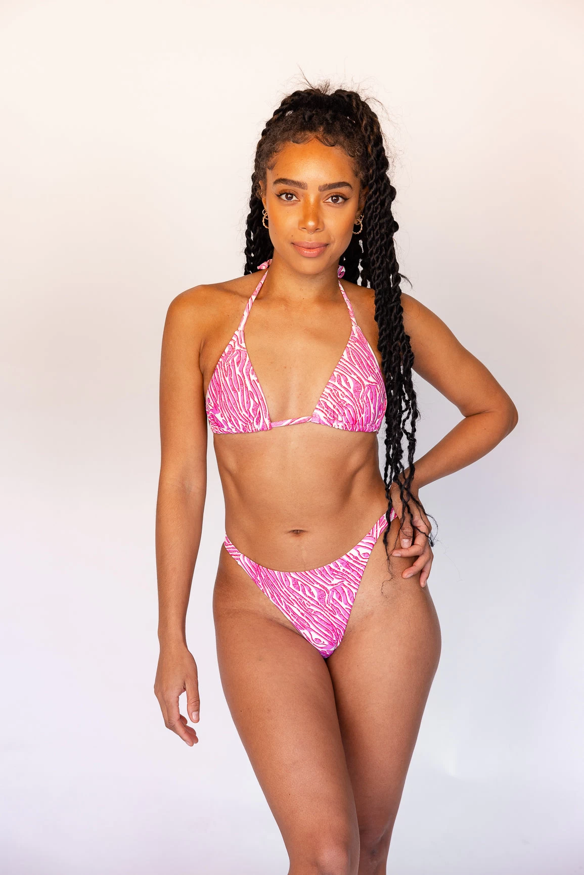 Dive into a world of untamed fashion and embrace wild elegance with our breathtaking Zebra Kisses print. This captivating design features elegant zebra stripes in vibrant splashes of pink delicately outlined in fiery red, exuding a sense of grace and power. Get ready to unleash your inner animal and make a statement like never before with Zebra Kisses – your ultimate swimwear companion for unforgettable summer memories!