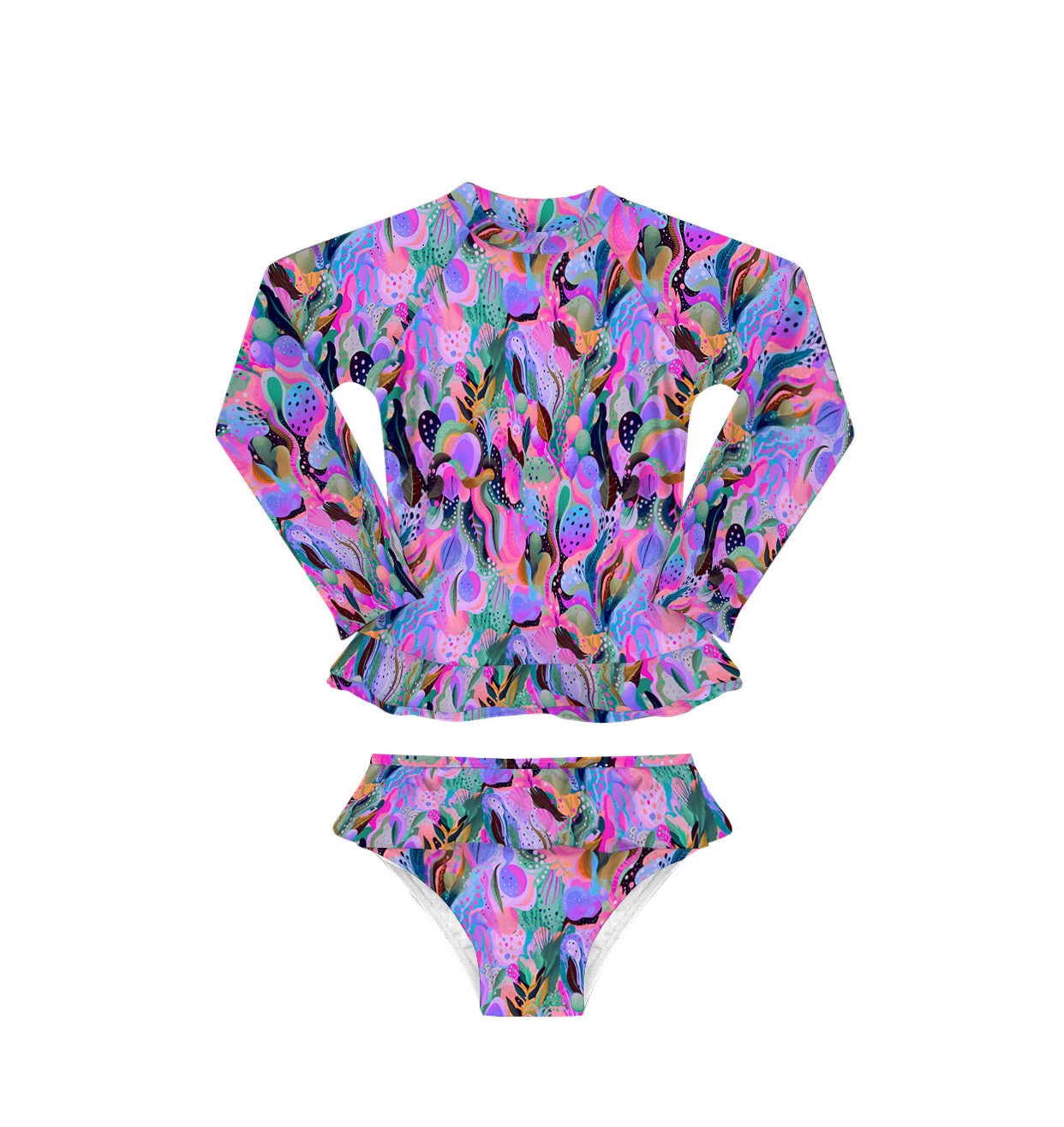 Get your mini fashionista ready for sunny days in the water with Mini Annie Rashie Set 2. This set comes with a pull-on long-sleeved frilled top for full sun protection and an adorable brief bottoms with a frilled waistband!
