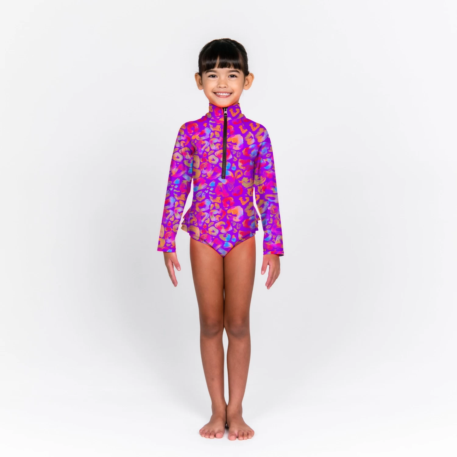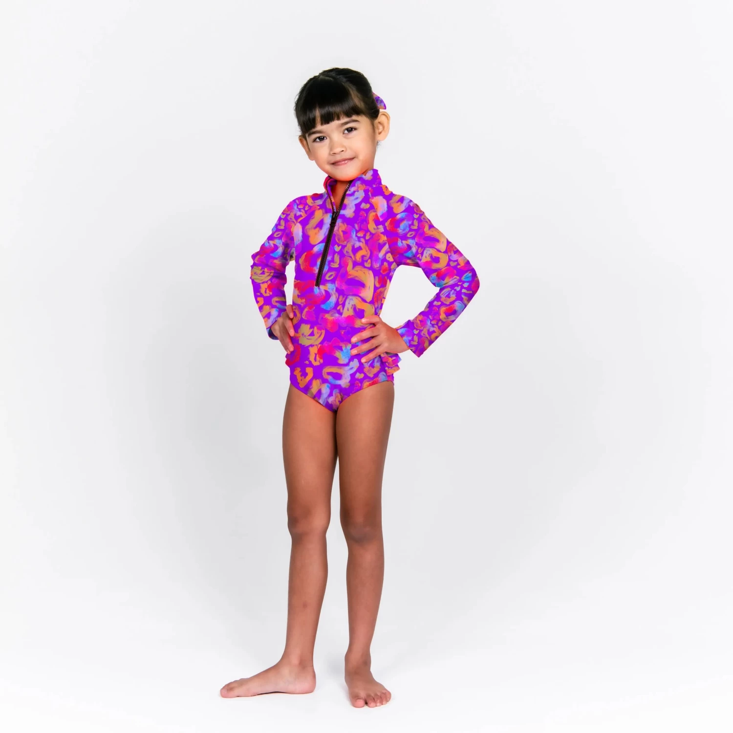 Indulge in the playful charm of “Loveheart Leopard” swimwear, boasting a gorgeous pink, blue, and orange leopard print set against a lovely purple backdrop, for a unique and stunning beach look! πΎππ