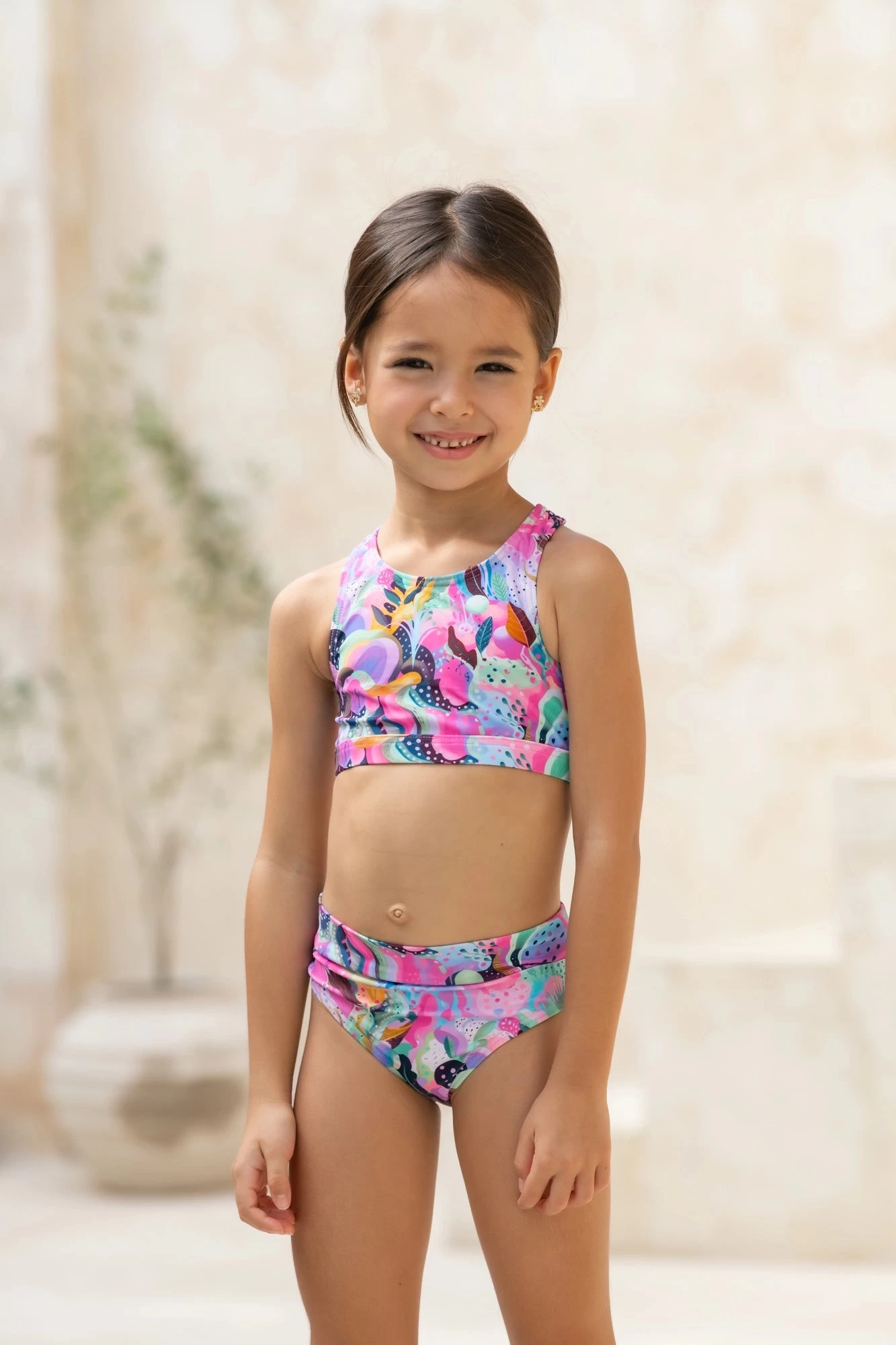 Experience the vibrant “Marine Fiesta” swimwear, boasting a unique print in shades of pink, purple, and green, offering a fresh, lively, and energetic sensation like dancing amidst an ocean celebration! 🌊🎉