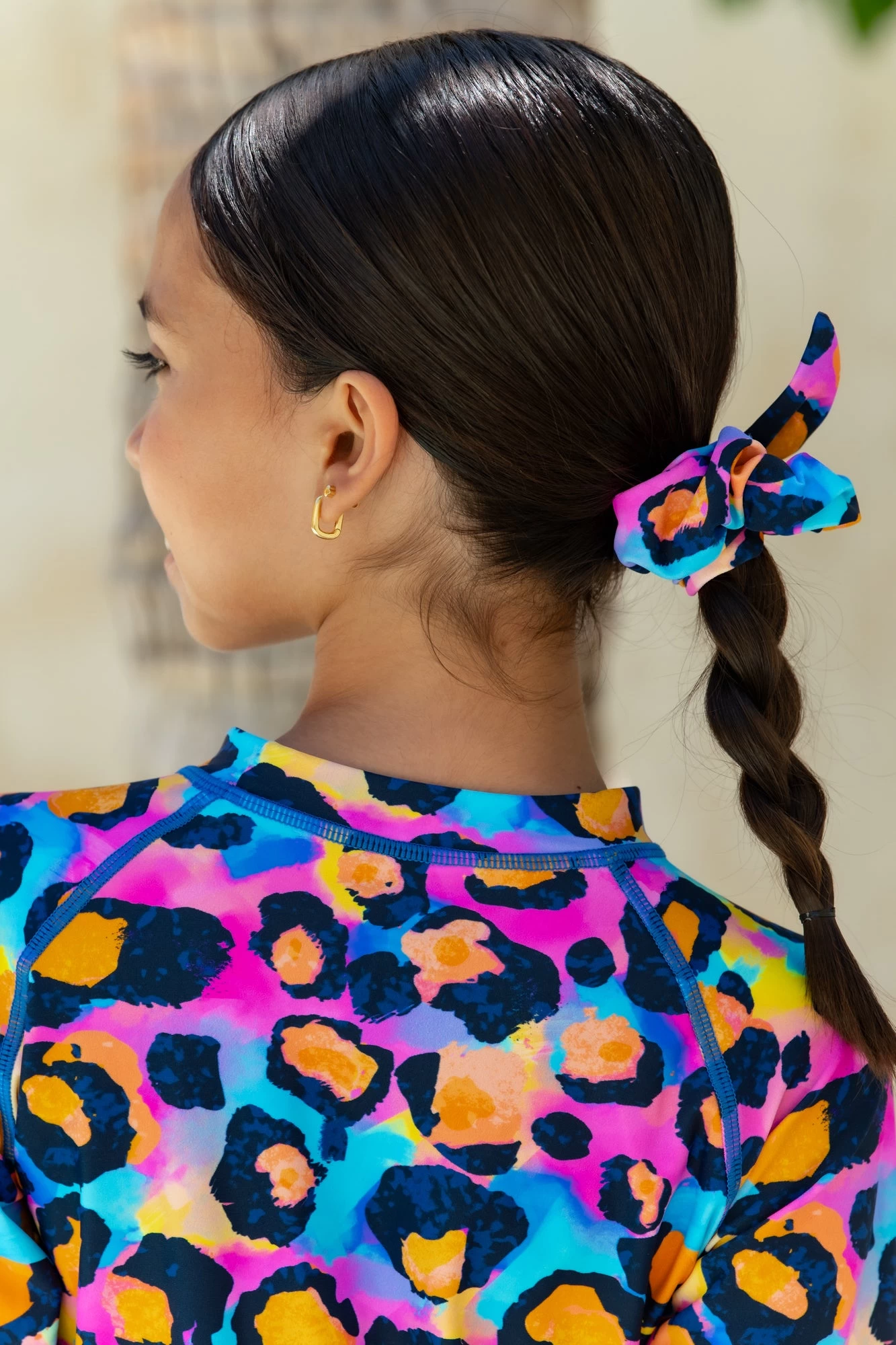 Step into the wild charm with “Aella”, a vibrant swimwear adorned in a playful leopard print of blue, yellow, pink, and orange hues, ensuring your beach days are as bold and chic as you are!