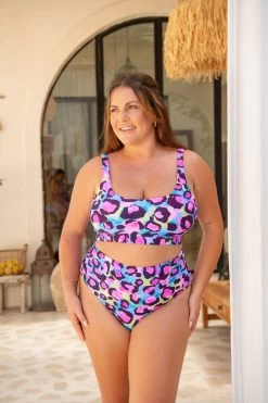 Get ready for fun in “Artemis” swimwear, featuring a unique leopard print with pops of pink and black on a backdrop of lush green and sea blue, bringing a youthful and charming vibe! 🐾👙